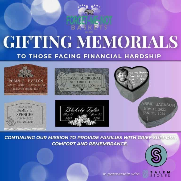 Forget-Me-Not Baskets’ mission is providing grief support, comfort and remembrance to families experiencing loss, and this partnership with Salem Cares is a beautiful extension of our mission. Together, Forget-Me-Not Baskets and Salem Cares will be offering cemetery monuments/memorials to those who have experienced or are experiencing financial hardship. This gift will allow parents to honor their child and provide solace to grieving families.